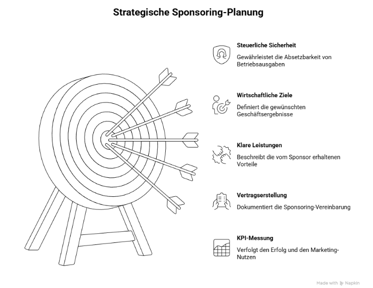 Klare Vereinbarungen sind ausschlaggebend für die Anerkennung der Zahlungen als betriebsnahe Aufwendungen und minimieren dementsprechend Risiken von Nachfragen durch die Finanzverwaltung. Ein schriftlicher Sponsoring‑Vertrag sollte daher mindestens die folgenden Punkte enthalten.